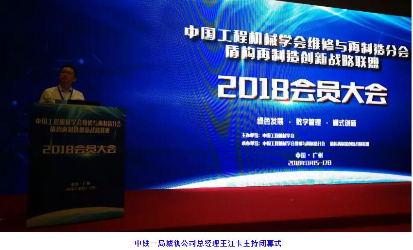 中鐵一局城軌公司總經理、盾構再制造創新戰略聯盟副理事長王江卡主持大會閉幕式,中鐵隧道局集團副總經理、中國工程機械學會維修與再制造分會、盾構再制造創新戰略聯盟常務副理事長陳建致閉幕辭。